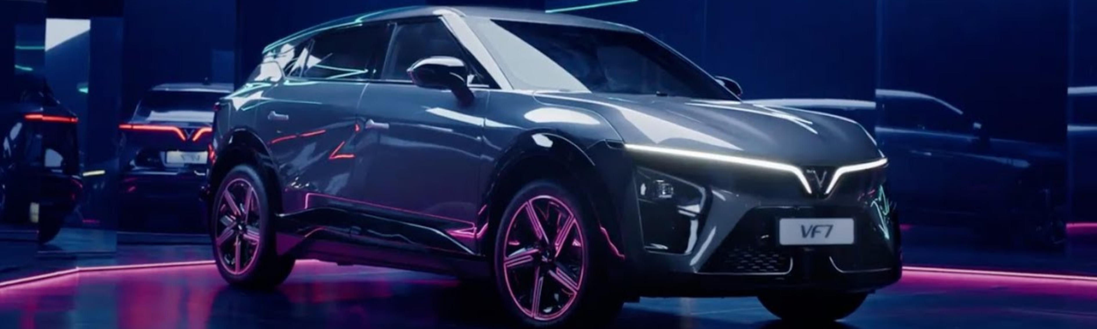 VinFast VF7 được tùy chọn 3 kích cỡ la-zăng là 19 inches đối với VF7 Eco; 20 inch đối với VF7 Plus. Phần đầu xe có cụm đèn có 1 projector mỗi bên, sử dụng công nghệ LED. Dải đèn LED định vị hình chữ V đặc trưng trên các mẫu xe sang của Vinfast. Ánh sáng được tỏa ra từ logo Vinfast vuốt ra các góc của xe, làm tăng lên sự nhận diện dù ở ban ngày hay ban đêm. Với thiết kế này, chắc chắn không thể nhầm lẫn mẫu xe thương hiệu Việt – Vinfast với bất kỳ thương hiệu xe hơi nào trên thế giới hiện nay.